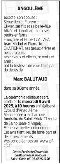 Cet espace « condoléances » est dédié à la mémoire de Monsieur Marc BALUTAUD.