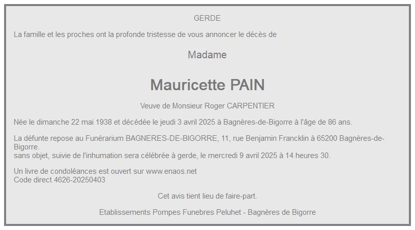 de Madame Mauricette CARPENTIER née PAIN