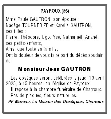 Cet espace « condoléances » est dédié à la mémoire de Monsieur Jean GAUTRON.