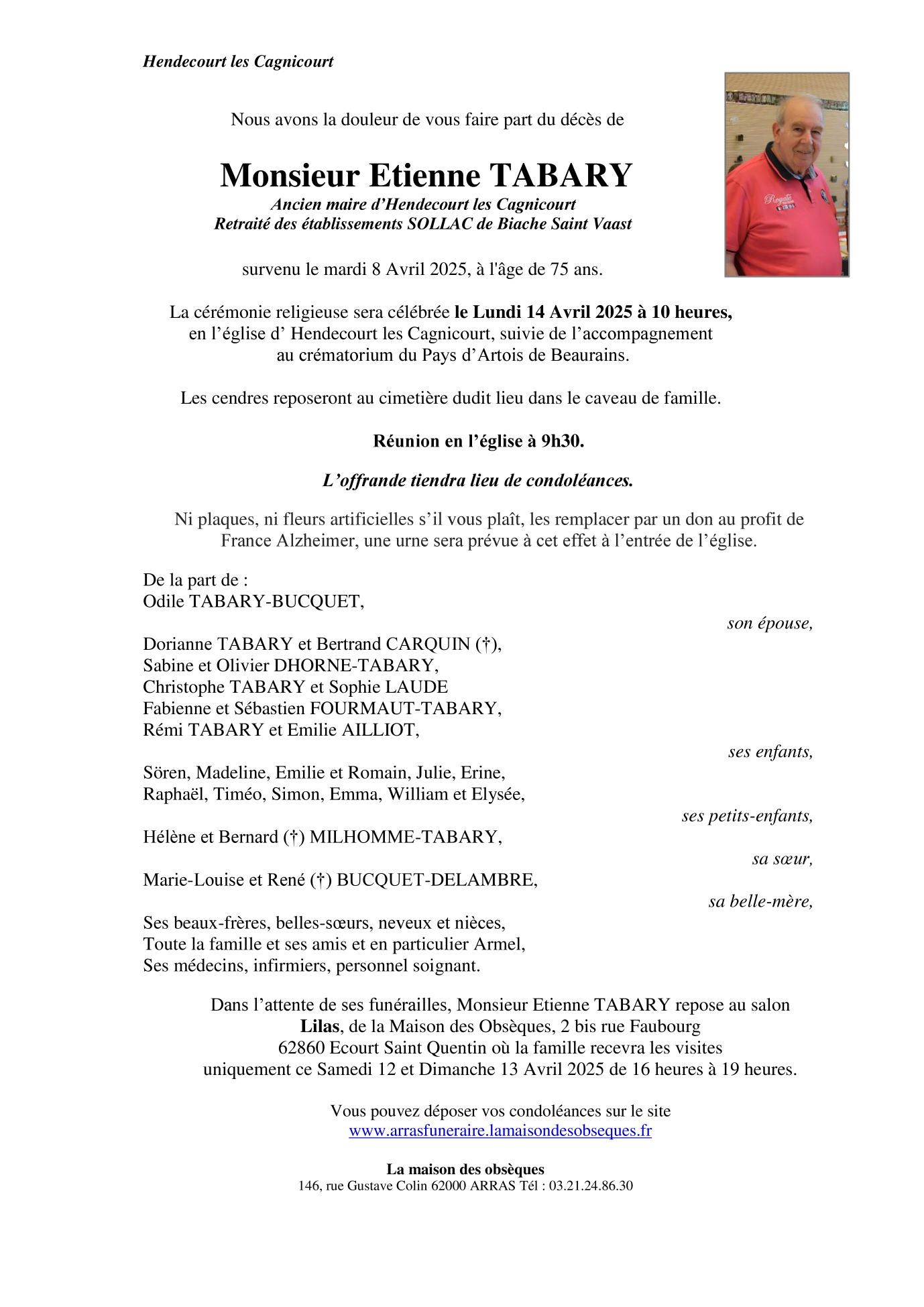 Décédé à Arras (62000) le mardi 8 avril 2025