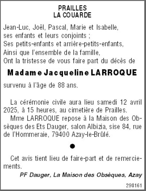 de Madame Jacqueline LARROQUE née PACHER