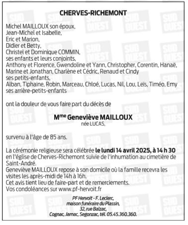 de Madame Geneviève MAILLOUX née LUCAS