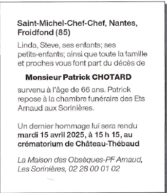 Cet espace « condoléances » est dédié à la mémoire de Monsieur Patrick CHOTARD.