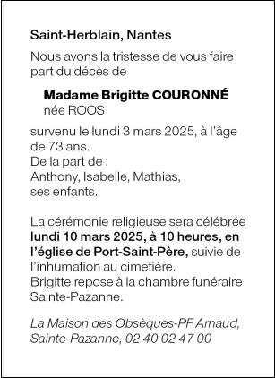 Décédée à Saint Cyr en Retz (44580) le jeudi 10 avril 2025