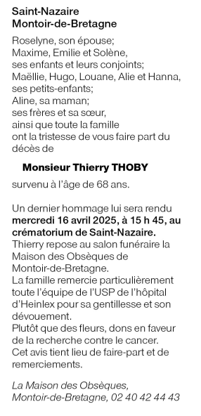 Cet espace « condoléances » est dédié à la mémoire de Monsieur Thierry THOBY.