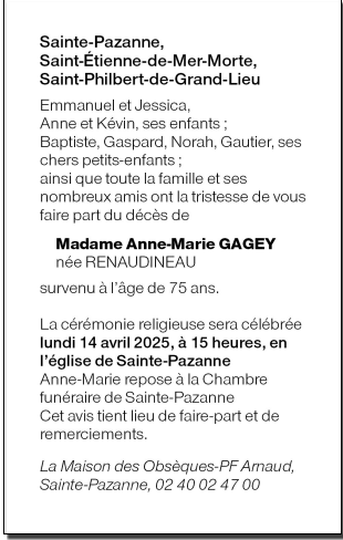 de Madame Anne-Marie GAGEY née RENAUDINEAU