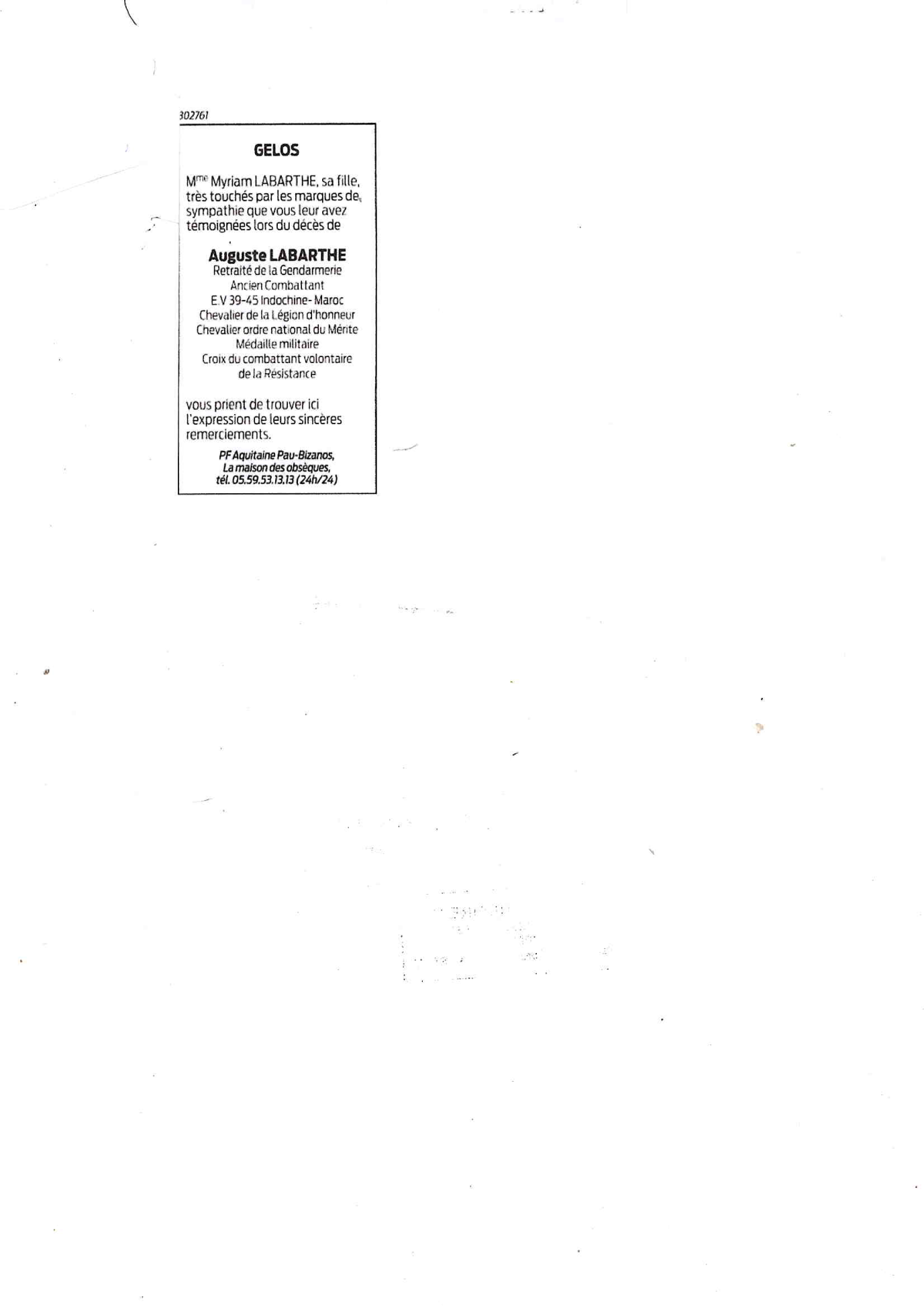 Cet espace « condoléances » est dédié à la mémoire de Monsieur Auguste LABARTHE.