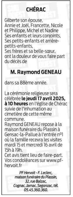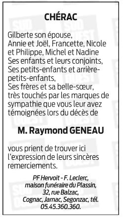 Cet espace « condoléances » est dédié à la mémoire de Monsieur Raymond GENEAU.