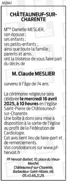 Cet espace « condoléances » est dédié à la mémoire de Monsieur Claude MESLIER.