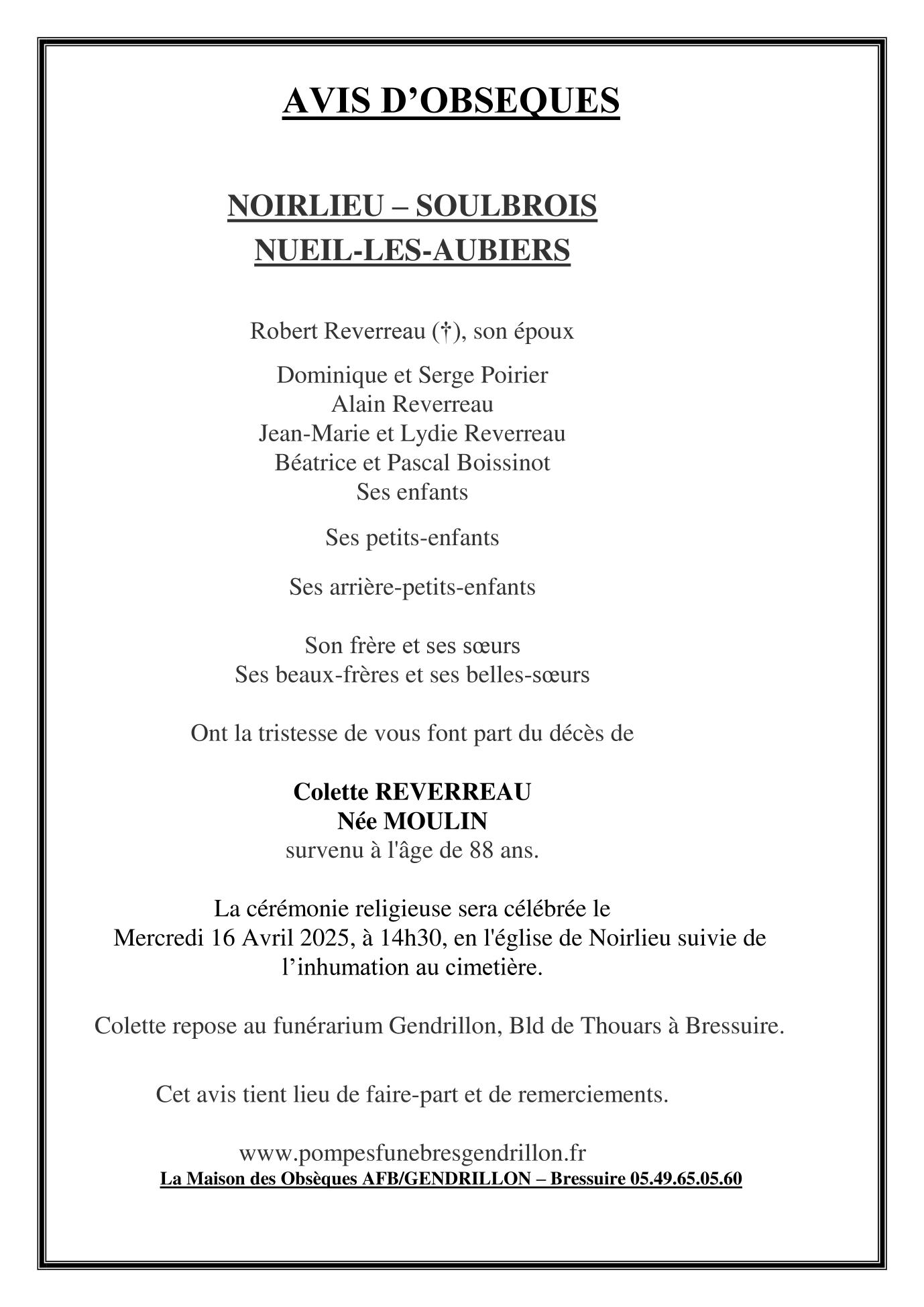 de Madame Colette REVERREAU née MOULIN