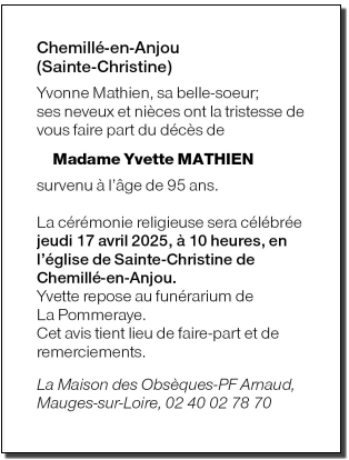 de Madame Yvette MATHIEN