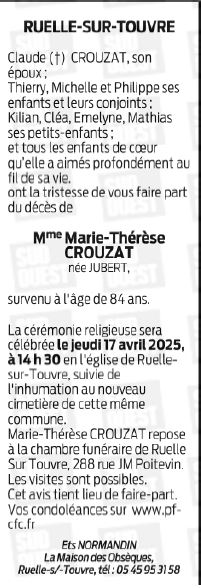 de Madame MARIE-THERESE CROUZAT née JUBERT