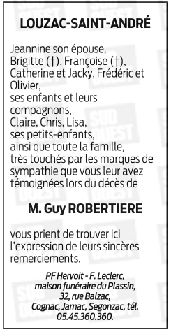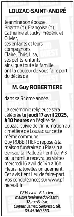 Cet espace « condoléances » est dédié à la mémoire de Monsieur Guy ROBERTIERE.