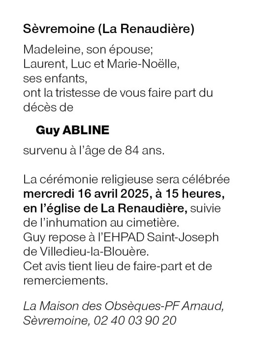 Cet espace « condoléances » est dédié à la mémoire de Monsieur Guy ABLINE.