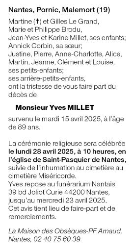 Cet espace « condoléances » est dédié à la mémoire de Monsieur Yves MILLET.