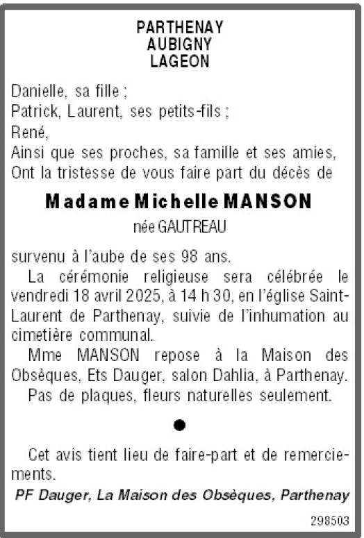 de Madame Michelle MANSON née GAUTREAU