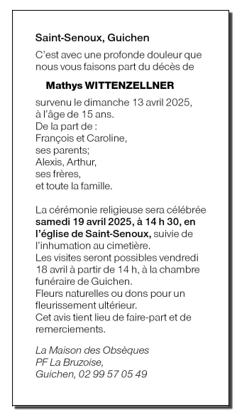 Cet espace « condoléances » est dédié à la mémoire de Monsieur Mathys WITTENZELLNER.