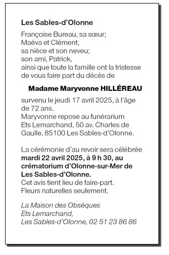 Cet espace « condoléances » est dédié à la mémoire de Madame Maryvonne HILLÉREAU.