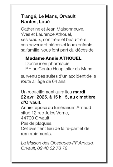 de Madame Annie ATHOUEL