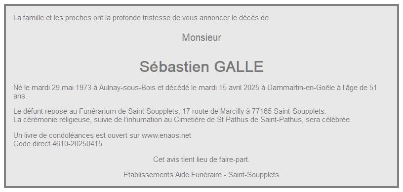 de Monsieur Sébastien GALLE