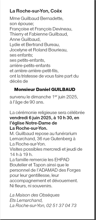 Décédée à La Roche-sur-Yon (85000) le jeudi 10 avril 2025