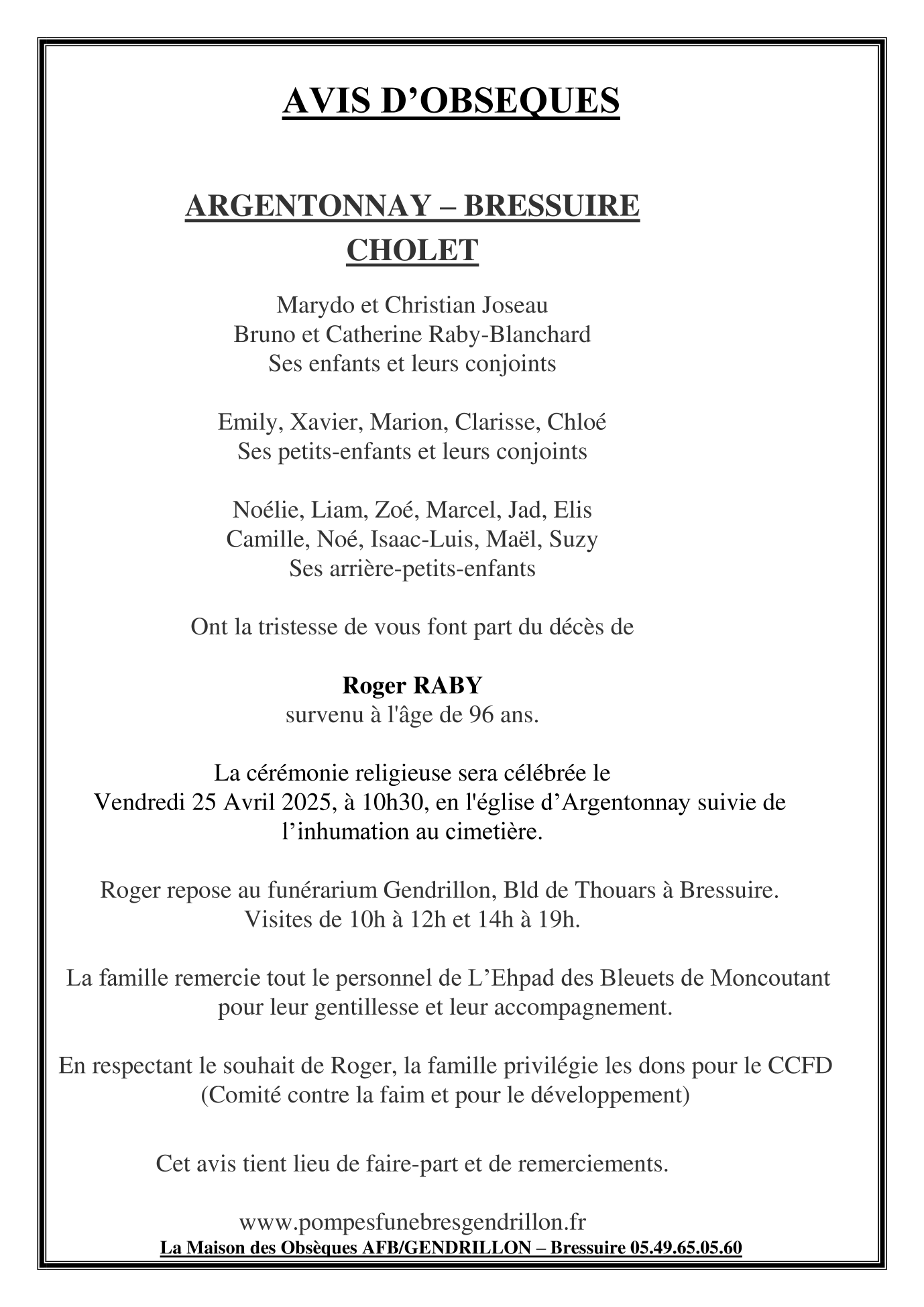 de Monsieur Roger RABY