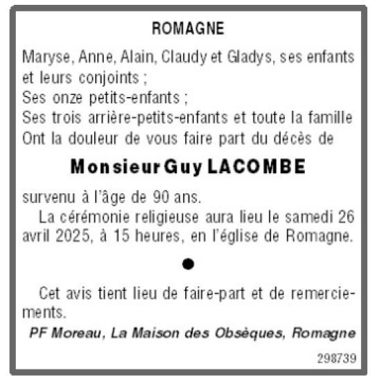 Cet espace « condoléances » est dédié à la mémoire de Monsieur Guy LACOMBE.