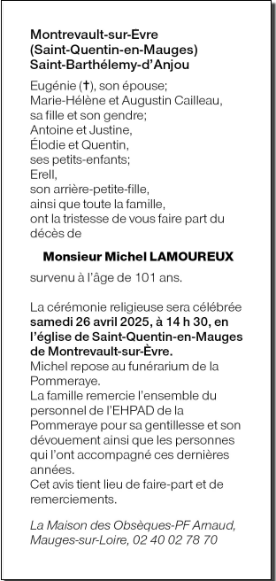 Cet espace « condoléances » est dédié à la mémoire de Monsieur Michel LAMOUREUX.