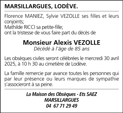 Cet espace « condoléances » est dédié à la mémoire de Monsieur Alexis VEZOLLE.
