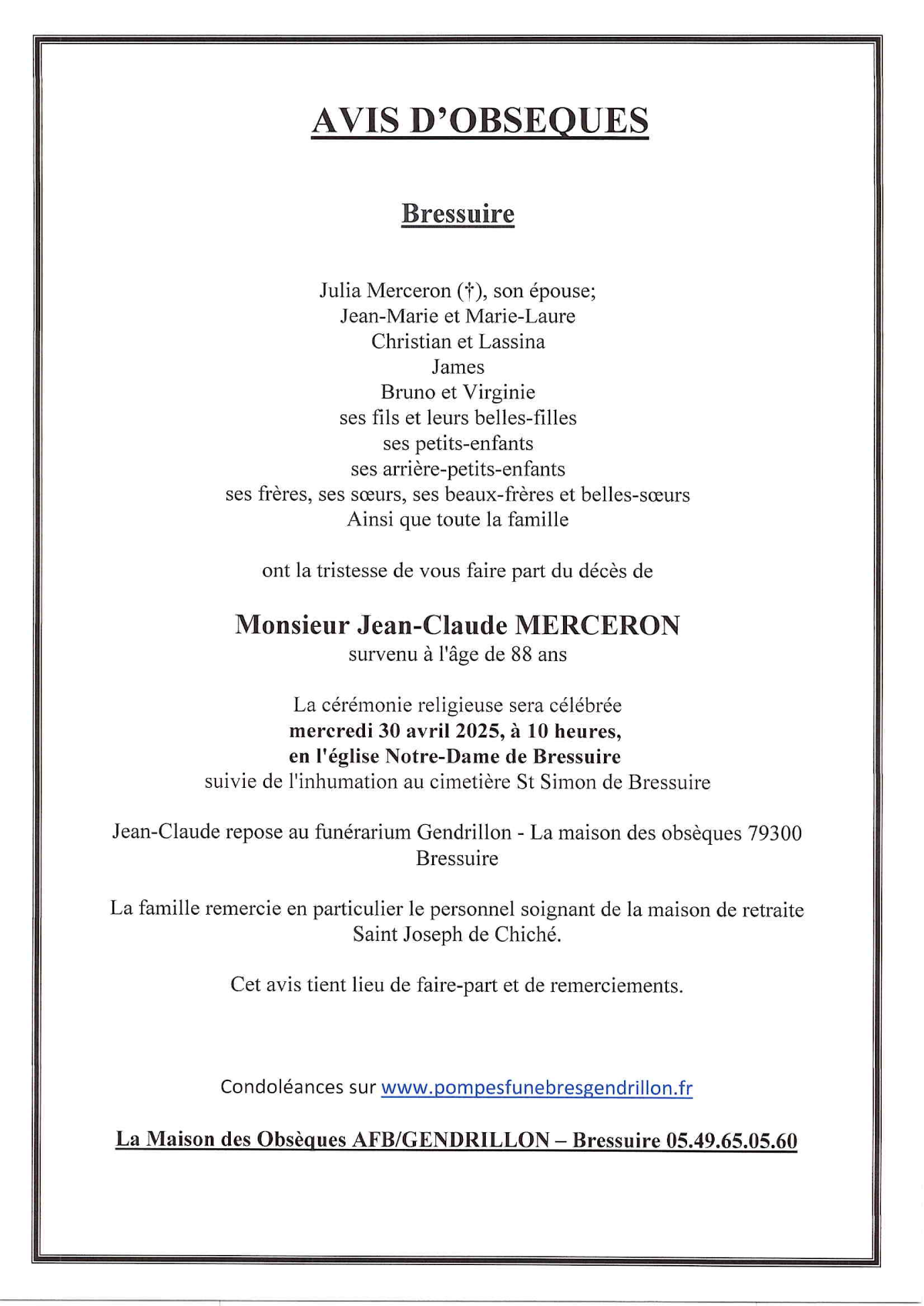 de Monsieur Jean-Claude MERCERON