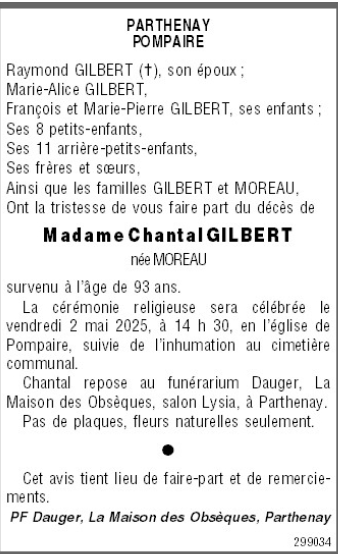 de Madame Chantal GILBERT née MOREAU