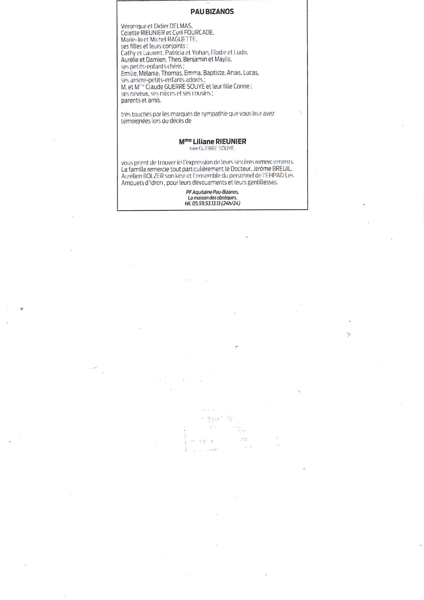 Cet espace « condoléances » est dédié à la mémoire de Madame Lilianne GUERRE SOUYE.