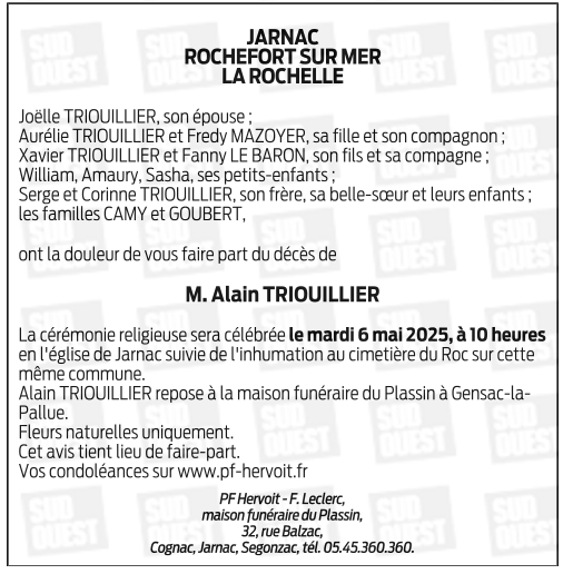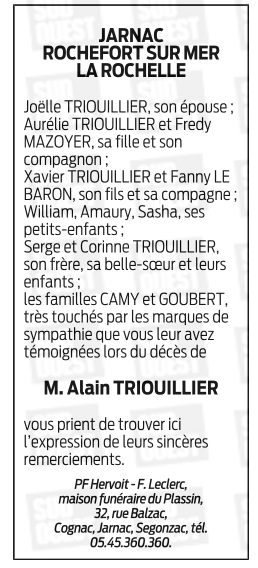 Cet espace « condoléances » est dédié à la mémoire de Monsieur Alain TRIOUILLIER.