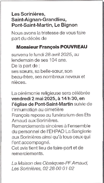 de Monsieur François POUVREAU