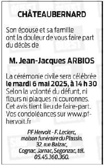 Cet espace « condoléances » est dédié à la mémoire de Monsieur Jean-Jacques ARBIOS.
