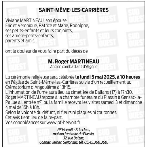 de Monsieur Roger MARTINEAU