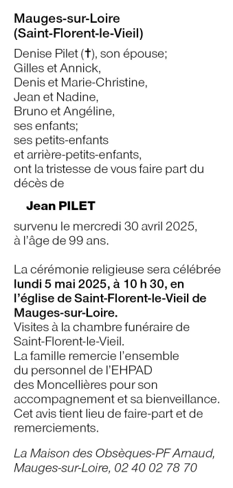 Cet espace « condoléances » est dédié à la mémoire de Monsieur Jean PILET.