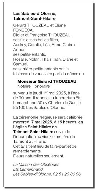 Cet espace « condoléances » est dédié à la mémoire de Monsieur Gérard THOUZEAU.
