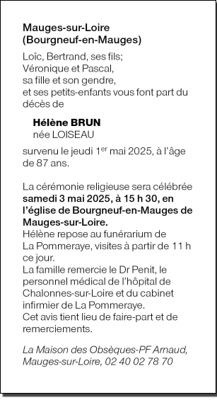 de Madame Hélène BRUN née LOISEAU
