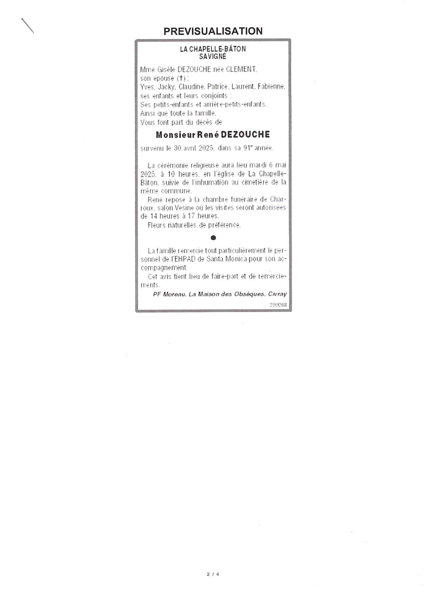 Cet espace « condoléances » est dédié à la mémoire de Monsieur René DEZOUCHE.