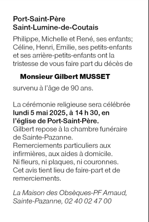 Cet espace « condoléances » est dédié à la mémoire de Monsieur Gilbert MUSSET.