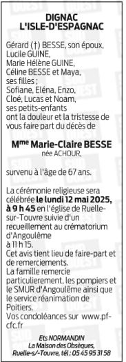de Madame MARIE-CLAIRE BESSE née ACHOUR