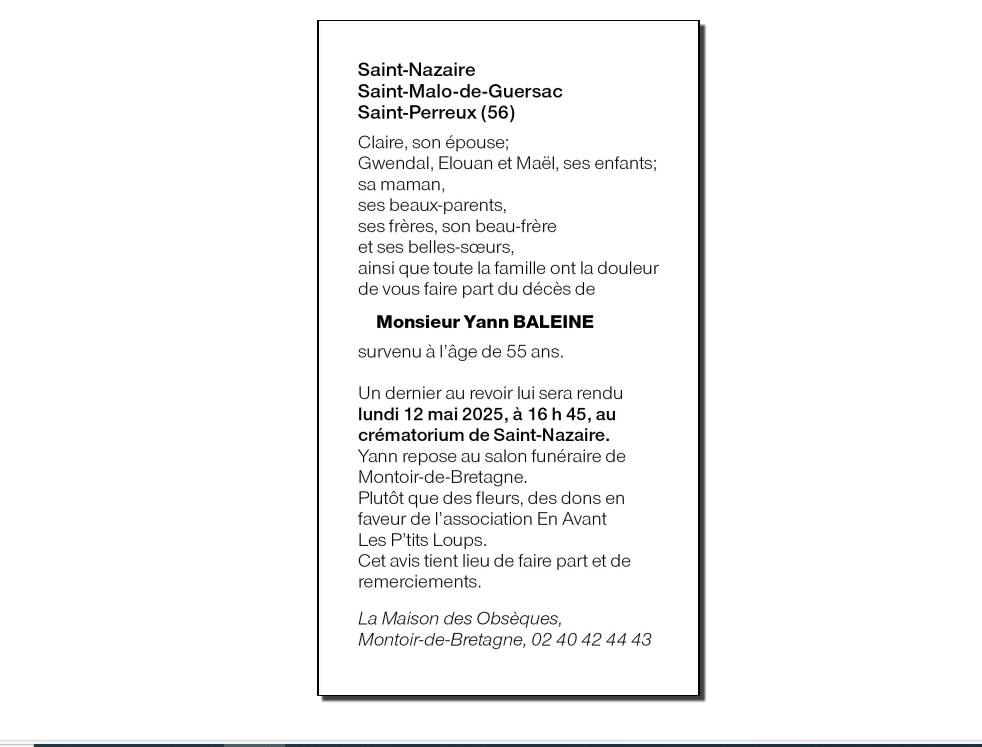 Cet espace « condoléances » est dédié à la mémoire de Monsieur Yann BALEINE.