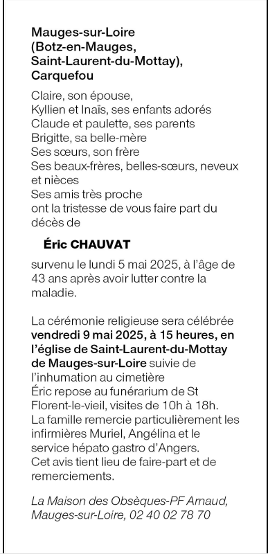 Cet espace « condoléances » est dédié à la mémoire de Monsieur Eric CHAUVAT.