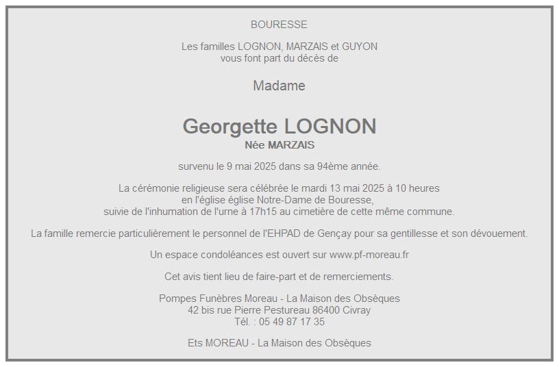 de Madame Georgette LOGNON née MARZAIS
