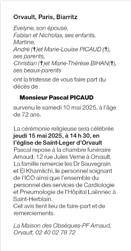 Cet espace « condoléances » est dédié à la mémoire de Monsieur Pascal PICAUD.
