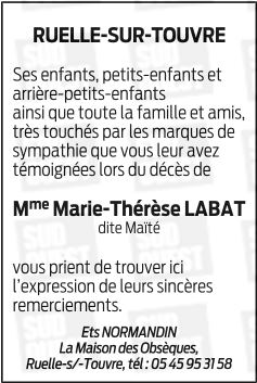 de Madame MARIE-THÉRÈSE LABAT née LABAT