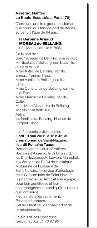 de Madame Marie-Isabelle MOREAU DE BELLAING née HIBON
