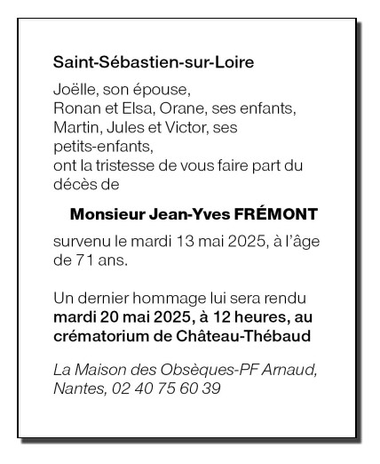 de Monsieur Jean-Yves FRÉMONT