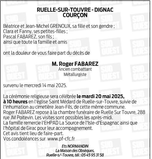 Cet espace « condoléances » est dédié à la mémoire de Monsieur Roger FABAREZ.